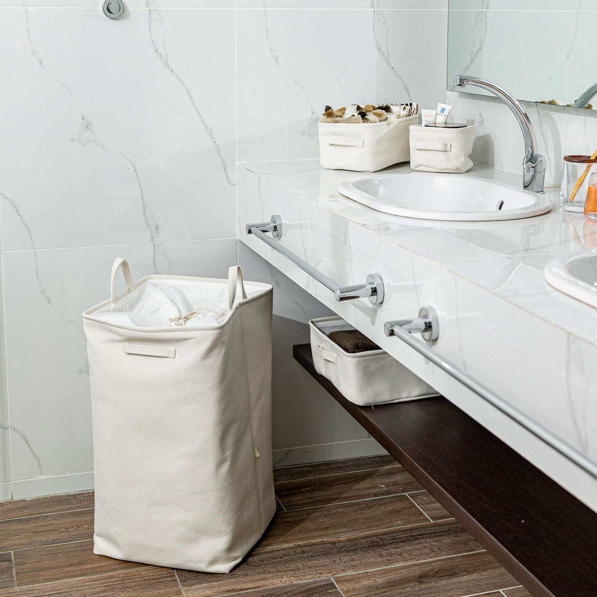Εξοπλισμένα με χερούλια μεταφοράς για ευκολία και πρακτικότητα, τα καλάθια Ivory συνδυάζουν ιδανικά αισθητική, οργάνωση και λειτουργικότητα.