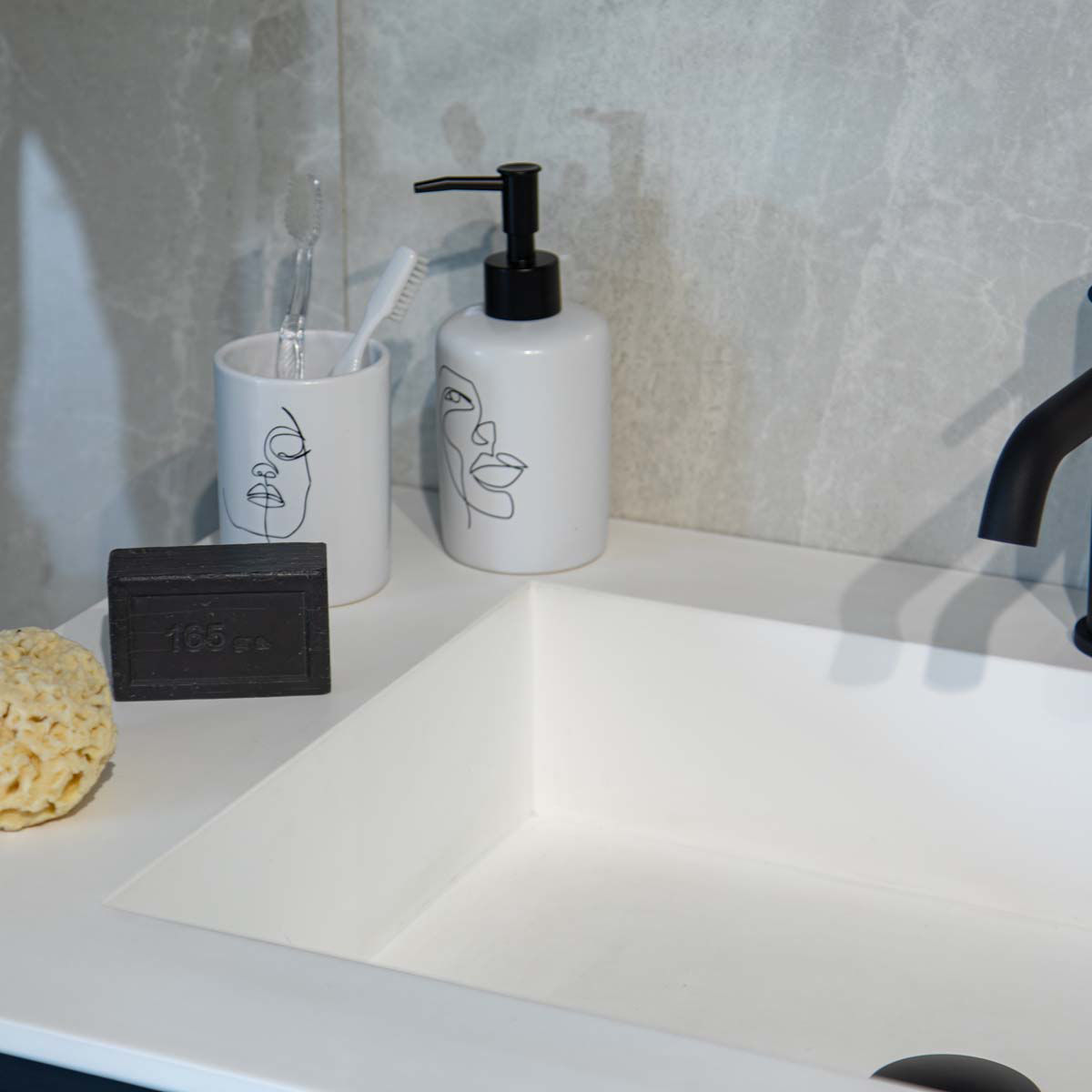 Η σειρά μπάνιου Line Art προσφέρει έναν συνδυασμό απλότητας και ομορφιάς στον χώρο σας. Περιλαμβάνει ποτηράκι, αντλία, ταπέτο καθώς και κουρτίνα μπάνιου με μίνιμαλ αισθητική, κομψές γραμμές και ουδέτερα χρώματα, προσφέροντας έναν μοντέρνο αέρα στο μπάνιό σας.