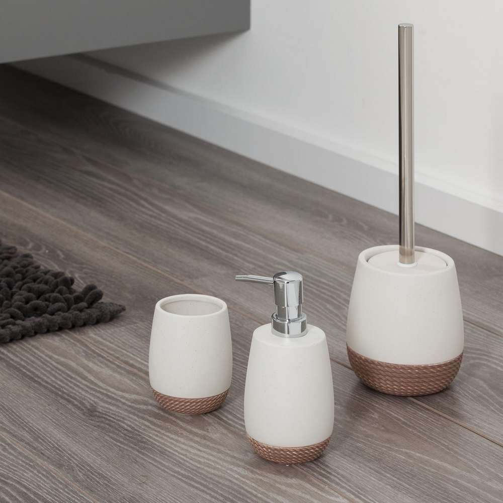 Δύο αποχρώσεις της άμμου σε ένα πιγκάλ τουαλέτας Sealskin. Το κάτω μέρος έχει μια απτή δομή με σπάγκο. Ταιριάζει απόλυτα σε ένα επαρχιακό εσωτερικό.