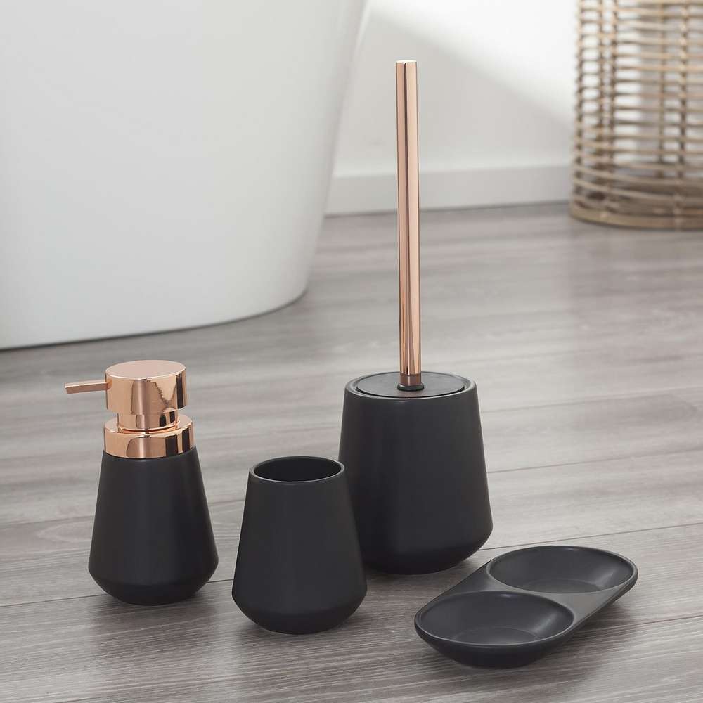 Η σειρά Conical της Sealskin χαρακτηρίζεται από το μοντέρνο κωνικό της σχήμα, ένα πραγματικό εντυπωσιακό στοιχείο για τα μπάνια. Σε μαύρο και μπρονζέ χρώμα.