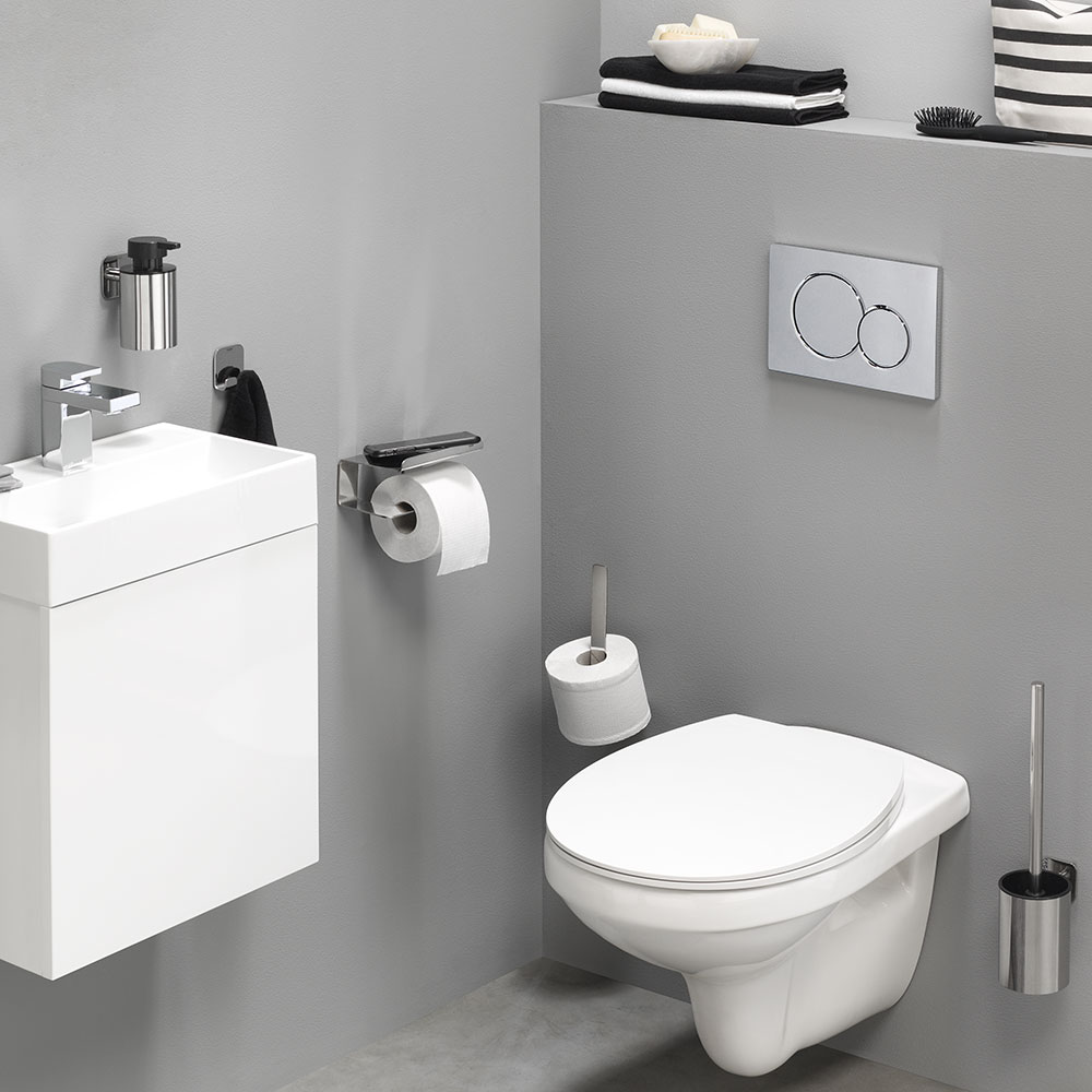 Μια εκλεπτυσμένη τουαλέτα; Ρίξτε μια ματιά σε αυτή τη βούρτσα τουαλέτας με βάση από τη σειρά Tiger Colar. Χαρακτηρίζεται από τις καθαρές γραμμές του με στρογγυλεμένες γωνίες. Αλλά δεν είναι μόνο ο σχεδιασμός που ξεχωρίζει. Αυτή η βούρτσα τουαλέτας με βάση μπορεί να τοποθετηθεί στο σύνολό της με ισχυρή, διπλής όψης ταινία 3M. Εύχρηστο και σκληρό, σύμφωνα με την τρέχουσα τάση.To Tiger Colar είναι η λύση σας για μια κομψή τουαλέτα. Μην ξεχάσετε να δείτε τα άλλα αξεσουάρ αυτής της σειράς. Ιδανικό για να ολοκληρώσετε το στυλ.