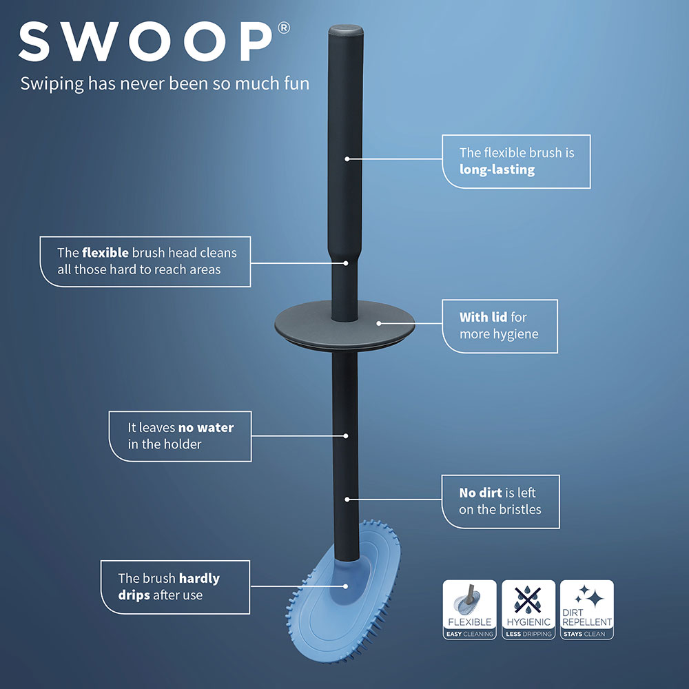 Μια φρέσκια, μοντέρνα αίσθηση στην τουαλέτα ή το μπάνιο χάρη σε αυτό το μαύρο πιγκάλ από τη σειρά Tiger Tess. Πηγαίνει στον τοίχο ή στο πάτωμα. Κολλήστε ή στερεώστε με βίδες και βύσματα τοίχου. Εξαρτάται αποκλειστικά από εσάς. Αυτή η βάση διαθέτει τη νέα εύκαμπτη βούρτσα τουαλέτας Swoop®. Μπορείτε εύκολα να καθαρίσετε δυσπρόσιτες περιοχές χρησιμοποιώντας αυτήν την πρωτοποριακή κεφαλή βούρτσας. Χάρη στο σχήμα και το ειδικό υλικό με τις ιδιότητες της σιλικόνης, δεν αφήνει πίσω του βρωμιά και δεν στάζει σχεδόν καθόλου μόλις το ξαναβάλετε στη θήκη. Το Tiger Tess είναι καινοτόμο και σύγχρονο, με τη γνωστή ποιότητα Tiger. Αυτή η σειρά σχεδιάστηκε στο Design Lab μας και έχει τιμηθεί με το βραβείο Good Industrial Design (GIO).