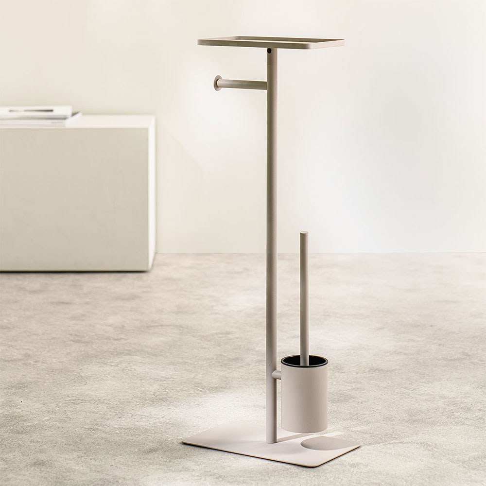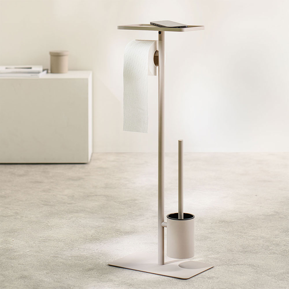 Έξυπνο, κομψό και πάντα σε κοντινή απόσταση! Αυτό το πολυλειτουργικό stand είναι απαραίτητο για το μπάνιο σας. Με θήκη χαρτιού υγείας, ενσωματωμένο πιγκάλ με βούρτσα και ένα εύχρηστο ράφι, θα έχετε τα πάντα κοντά σας. Το καθάρισμα είναι πιο εύκολο από ποτέ. Ο κομψός και προσεγμένος σχεδιασμός δημιουργεί μια κομψή, οργανωμένη εμφάνιση – ακριβώς όπως τη θέλετε!