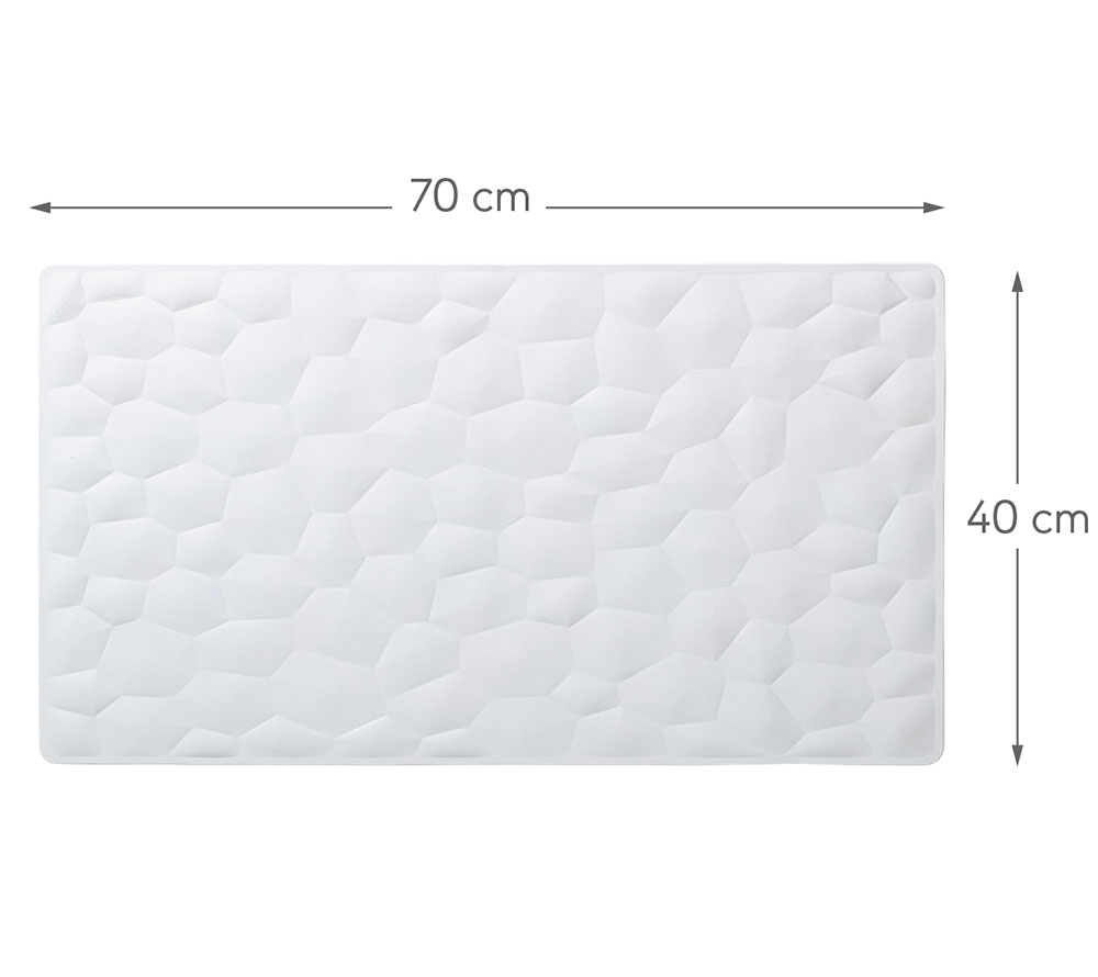 Μεταμορφώστε το μπάνιο σας σε μια όαση γαλήνης και ασφάλειας με το αντιολισθητικό χαλάκι μπάνιου Jade. Δεν απολαμβάνετε μόνο ένα σταθερό κράτημα, αλλά και ένα κομψό σχέδιο. Χάρη στο διαχρονικό λευκό χρώμα, αυτό το χαλάκι ασφαλείας ταιριάζει σε κάθε μπάνιο. Το αντιολισθητικό χαλάκι 40x70 cm είναι εξοπλισμένο με βεντούζες στο κάτω μέρος για να μπορείτε να το στερεώνετε με ασφάλεια. Αποφύγετε το γλίστρημα στο μπάνιο σας με το μοντέρνο πατάκι μπάνιου Jade!