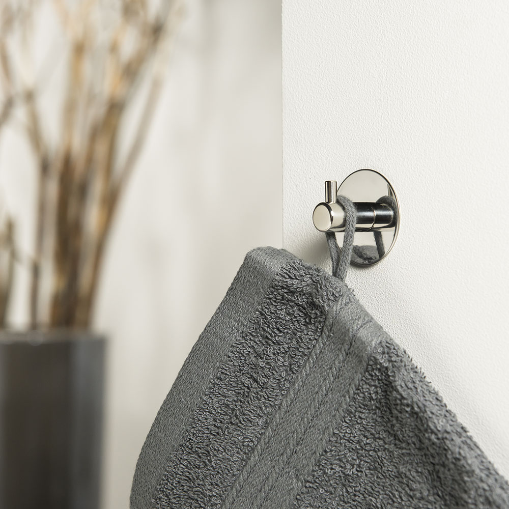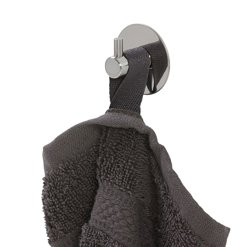 Στιβαρή εμφάνιση με μοντέρνες πινελιές! Το στυλ και η λειτουργικότητα συναντιούνται σε αυτό το αυτοκόλλητο άγκιστρο από γυαλισμένο επιχρωμιωμένο ανοξείδωτο ατσάλι. Ιδανικό για λείες επιφάνειες στο μπάνιο ή την κουζίνα. Αυτός ο γάντζος πετσετών είναι εύκολος στην εγκατάσταση.