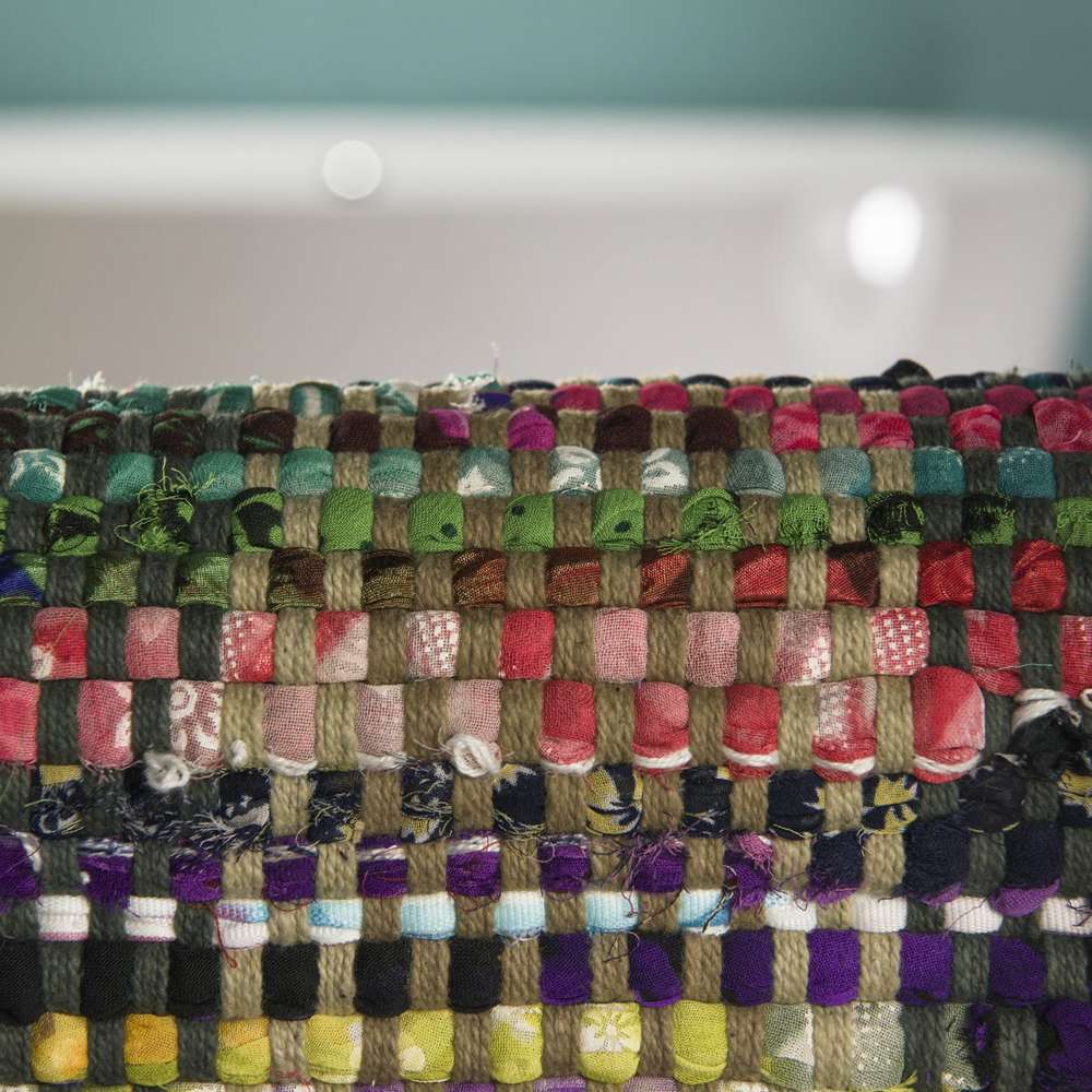 Χειροποίητο χαλάκι μπάνιου από ανακυκλωμένα υλικά. Το χαλάκι μπάνιου Madras της Sealskin είναι καλό για το περιβάλλον αλλά και για τα πόδια σας. Οι κάθετες λωρίδες θυμίζουν τις κλωστές από χρωματιστά μαργαριτάρια από τη μακρινή Ινδία. Αυτό συμβάλλει στη δημιουργία μιας αίσθησης διακοπών στο μπάνιο σας κάθε μέρα. Κάθε χαλάκι είναι μοναδικό χάρη στη χρήση ανακυκλωμένου υλικού. Το χαλάκι είναι κατασκευασμένο από βαμβάκι και επομένως απορροφά καλά την υγρασία.