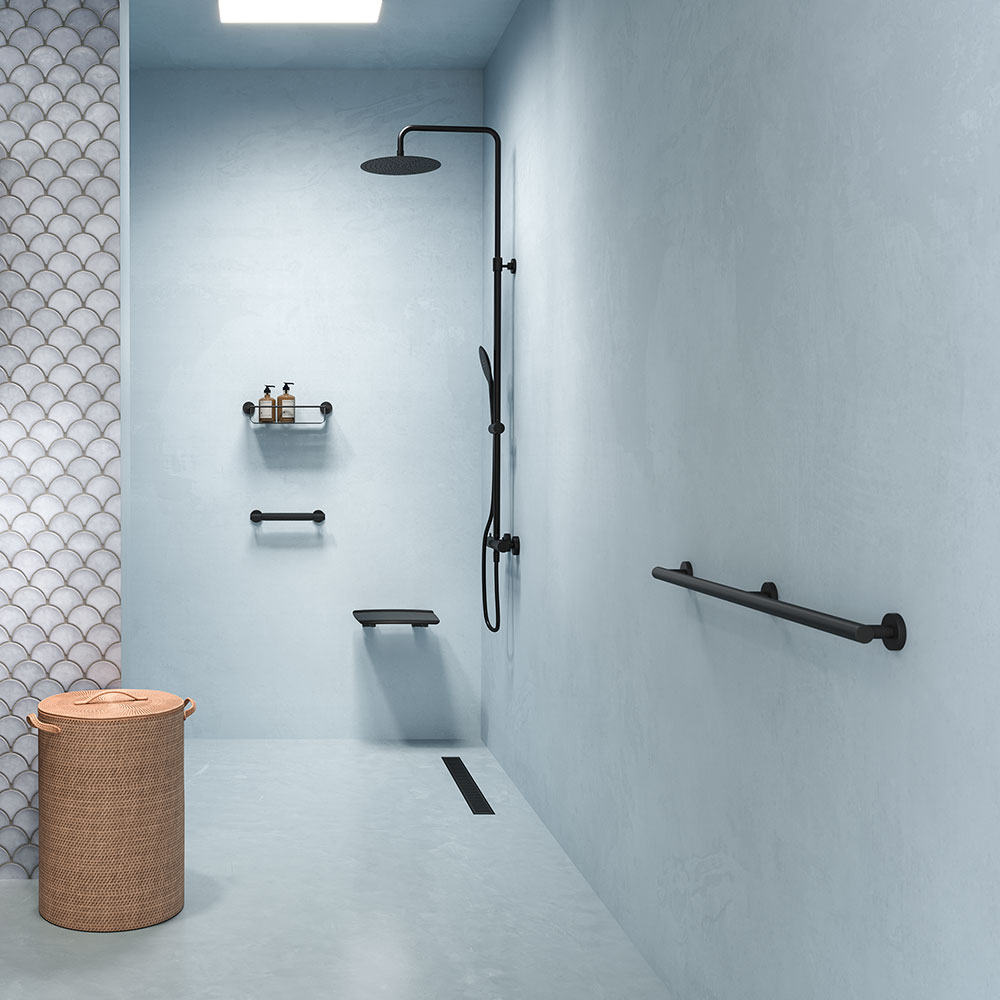 Το καλάθι ντους Tiger Boston, με σύγχρονο μαύρο ματ φινίρισμα, είναι ο τέλειος τρόπος για να έχετε κοντά σας τη συλλογή σαμπουάν, μαλακτικών και αφρόλουτρων στο χέρι καθώς πλένεστε. Και με το επίπεδο κάτω μέρος και τις ψηλές πλευρές, όλα τα προϊόντα σας είναι βέβαιο ότι θα παραμείνουν με ασφάλεια στο καλάθι. Το καλάθι είναι εύκολο να τοποθετηθεί σε οποιαδήποτε θέση στον τοίχο, έτσι ώστε τα προϊόντα περιποίησης να είναι πάντα εύκολα προσβάσιμα. Το προϊόν είναι προσαρτημένο σε μια πλάκα τοίχου, πράγμα που σημαίνει ότι το υλικό τοποθέτησης (περιλαμβάνεται) είναι κρυμμένο για μια κομψή εμφάνιση. Εκτός από αυτό το εύχρηστο, κομψό καλάθι ντους, η σειρά Boston περιλαμβάνει μια μεγάλη ποικιλία από άλλα αξεσουάρ για το μπάνιο και την τουαλέτα. Το προϊόν μπορεί επίσης να τοποθετηθεί χρησιμοποιώντας το TigerFix, ένα πατενταρισμένο σύστημα συγκόλλησης που σας επιτρέπει να τοποθετείτε γρήγορα και εύκολα αξεσουάρ σε μια λεία, σκληρή επιφάνεια. Με τη χρήση του Tigerfix η διάτρηση δεν είναι απαραίτητη και τα εξαρτήματα μπορούν να αφαιρεθούν εύκολα χωρίς να αφήσουν υπολείμματα στην επιφάνεια τοποθέτησης. Το TigerFix διατίθεται ξεχωριστά.