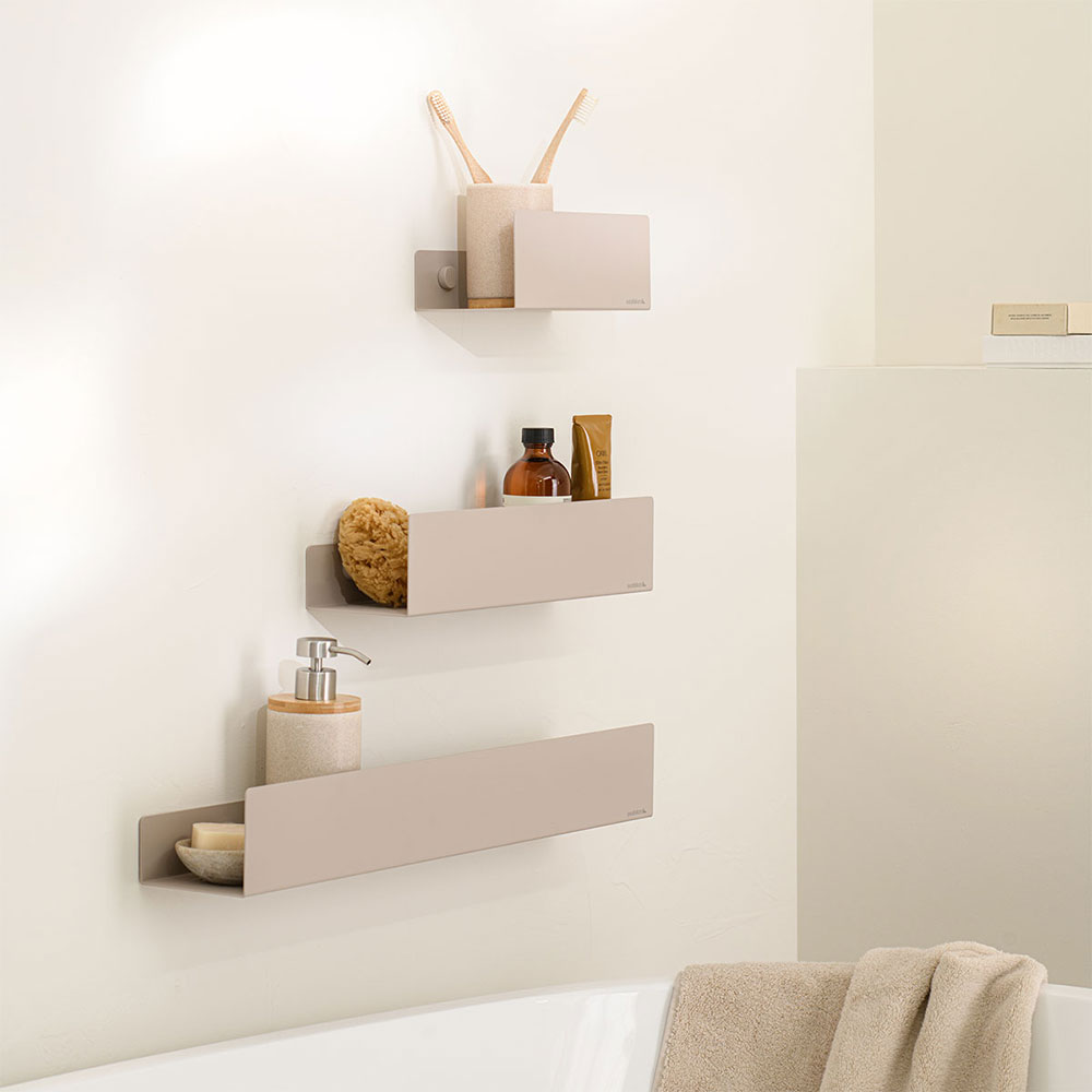 Αυτό το ευέλικτο ράφι τοίχου είναι διακοσμητικό και λειτουργικό και ταιριάζει σε κάθε χώρο. Χρησιμοποιήστε το στο μπάνιο για τα μπουκάλια σαμπουάν σας, με έξυπνες υποδοχές για αποστράγγιση. Η ψηλή πρόσοψη διατηρεί τα πάντα καθαρά και τακτοποιημένα. Συνδυάστε πολλά ράφια για ένα πρακτικότερο αποτέλεσμα και δημιουργήστε την ιδανική λύση αποθήκευσης.