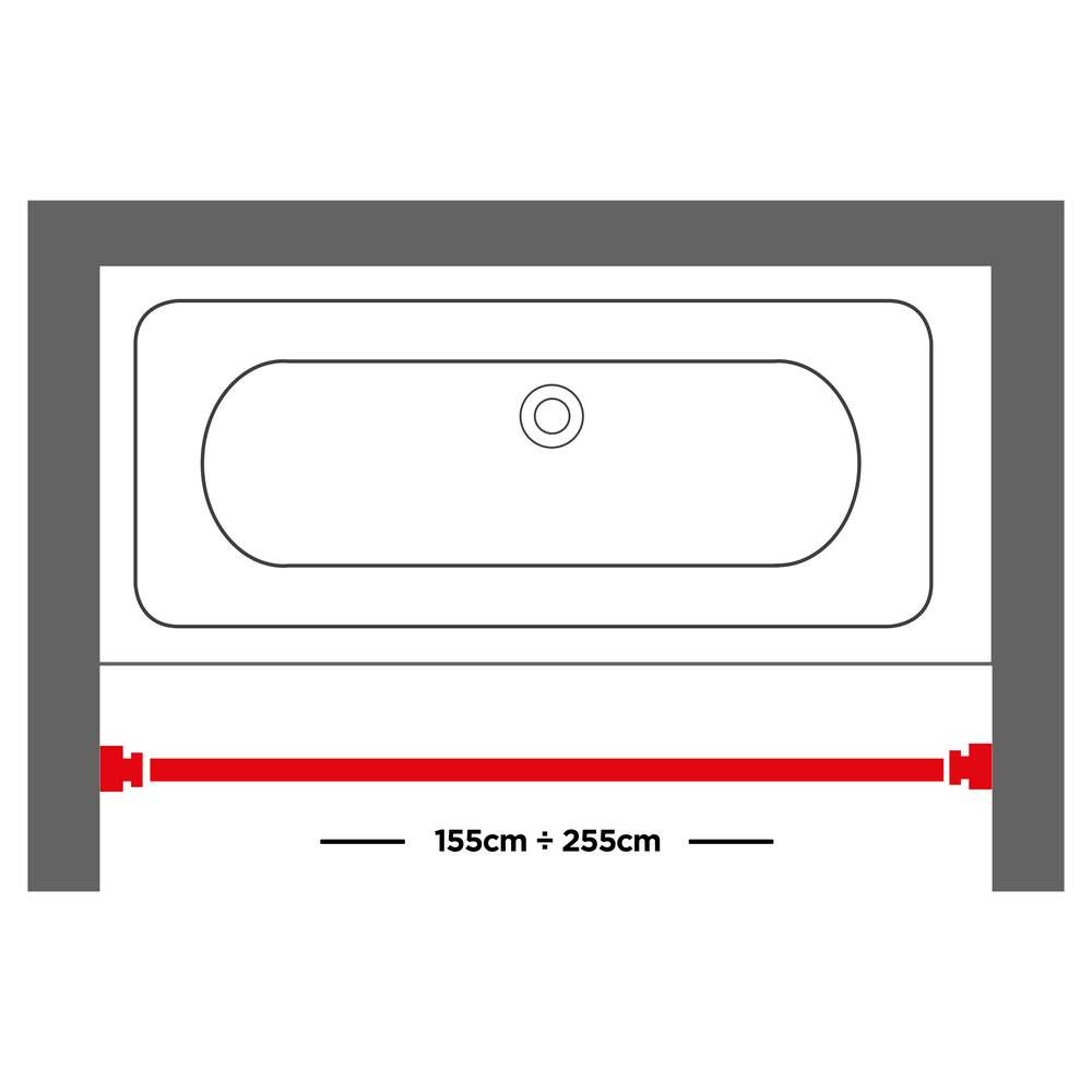 Ο βραχίονας μπάνιου της Sealskin είναι ιδανικός για όταν προτιμάτε να μην τρυπήσετε τα πλακάκια του μπάνιου σας. Αυτό συμβαίνει επειδή ο επεκτεινόμενος αυτός βραχίονας μπάνιου μπορεί εύκολα να στερεωθεί μεταξύ δύο τοίχων. Με ελάχιστο μήκος 155 cm, μέγιστο μήκος 255 cm και διάμετρο 20 mm, ο βραχίονας αυτός είναι κατάλληλος για όλους σχεδόν τους τύπους κουρτινών μπάνιου. Ο βραχίονας είναι κατασκευασμένος από ανθεκτικό αλουμίνιο. Καθαρίζετε τακτικά τον βραχίονα με ήπιο σαπουνόνερο και στη συνέχεια σκουπίζετε με μια πετσέτα.