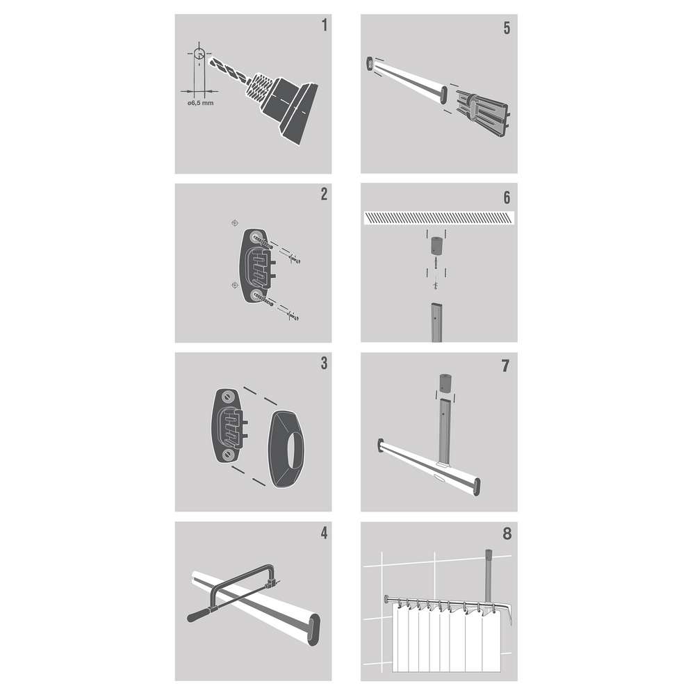 - Μετρήστε και προσαρμόστε: οι τρεις ράβδοι των 90 cm καθώς και το στήριγμα οροφής μήκους 60 cm, κόβονται εύκολα στο κατάλληλο μέγεθος