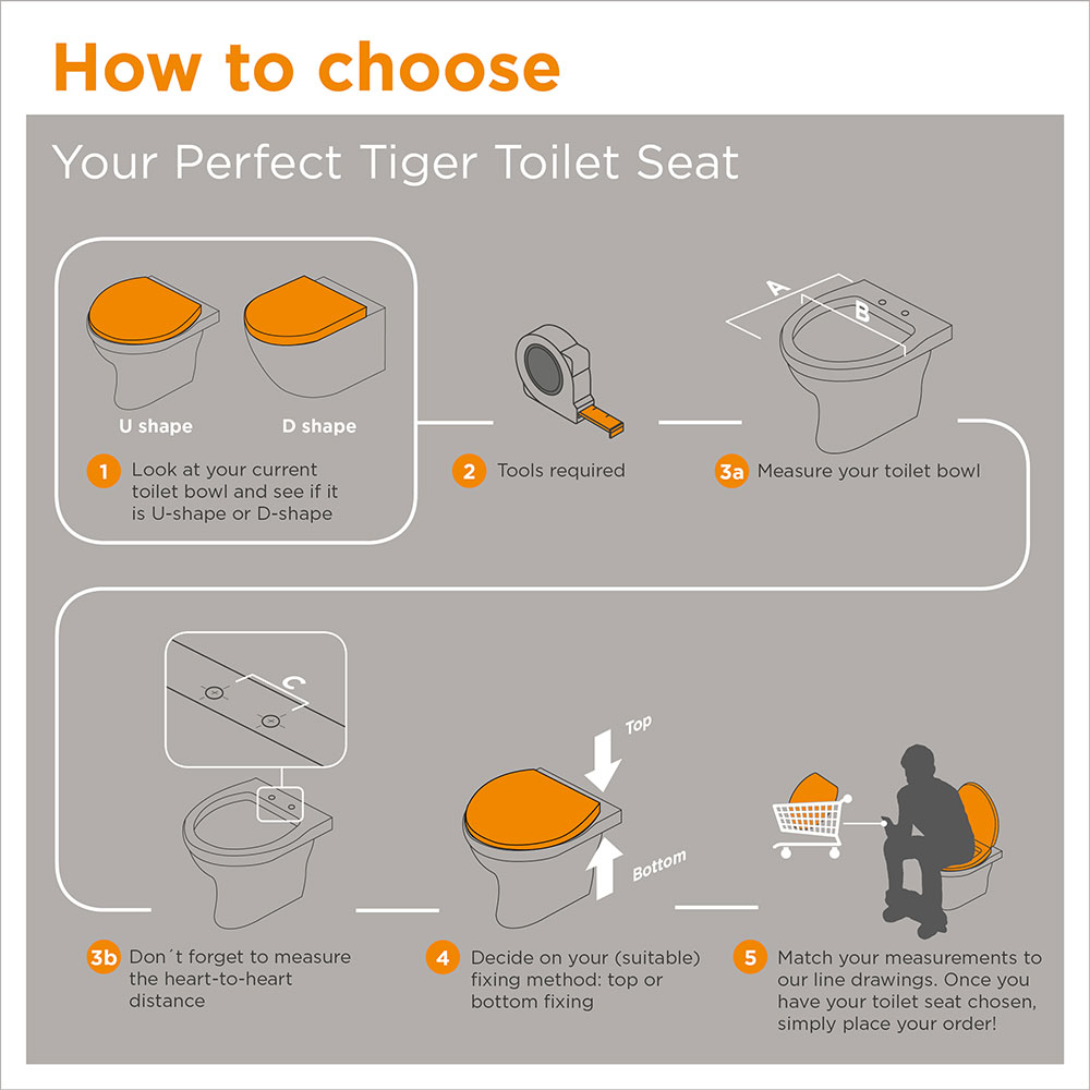 Απλό αλλά κομψό, έρχεται σε λευκό χρώμα. Το κάθισμα τουαλέτας Tiger Ventura είναι κατασκευασμένο από duroplast και είναι ανθεκτικό στις γρατσουνιές. Στερεώνεται από την επάνω πλευρά της λεκάνης καθιστώντας το ενοχλητικό βίδωμα στο κάτω μέρος ένα πράγμα του παρελθόντος. Ο μηχανισμός soft-close εξασφαλίζει ότι το καπάκι και το κάθισμα κλείνουν απαλά και αθόρυβα και αποτρέπει τη ζημιά στο κεραμικό. Ο καθαρισμός του καθίσματος τουαλέτας είναι εύκολος επειδή μπορεί εύκολα να αφαιρεθεί από το σετ στήριξης από ανοξείδωτο ατσάλι λόγω του μηχανισμού Easy Clean. Κατά την αντικατάσταση καθισμάτων τουαλέτας, συνιστάται επίσης να συμβουλευτείτε το γραμμικό σχέδιο αυτού του άρθρου. Περιέχει όλες τις απαραίτητες μετρήσεις και αν ταιριάζουν με τη λεκάνη της τουαλέτας σας, είστε σίγουροι ότι έχετε ένα σταθερό και κατάλληλο εξάρτημα.