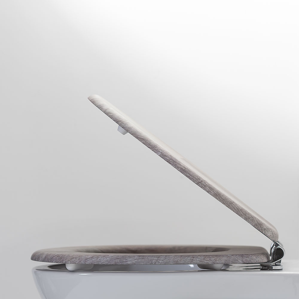 Τα καθίσματα τουαλέτας Old Wood είναι η ιδανική λύση για όσους θέλουν να καθίσουν όμορφα και απαλά. Το κάθισμα είναι εξαιρετικά άνετο λόγω του φινιρίσματος με ειδική επίστρωση από καουτσούκ. Απορροφά γρήγορα τη θερμοκρασία του σώματος και δεν το αισθάνεστε ποτέ κρύο. Με το μοτίβο του φυσικού ξύλου, δίνει στο μπάνιο μια ζεστή αίσθηση. Το καπάκι και το κάθισμα κλείνουν αργά από τους μεντεσέδες λόγω του μηχανισμού soft-close. Με αυτόν τον τρόπο το κεραμικό της λεκάνης τουαλέτας δεν καταστρέφεται και είναι επίσης αθόρυβο. Η επιφάνεια παραμένει υγιεινή λόγω της ειδικής επίστρωσης που εξασφαλίζει επίσης ότι ο σχεδιασμός είναι ανθεκτικός στην υπεριώδη ακτινοβολία και παραμένει όμορφος για χρόνια. Πριν αντικαταστήσετε το κάθισμα τουαλέτας σας, συνιστάται να ρίξετε μια ματιά στο γραμμικό σχέδιο αυτού του άρθρου. Περιέχει όλες τις απαραίτητες μετρήσεις και αν ταιριάζουν με τη λεκάνη της τουαλέτας σας, είστε σίγουροι ότι συνδέεται σταθερά.